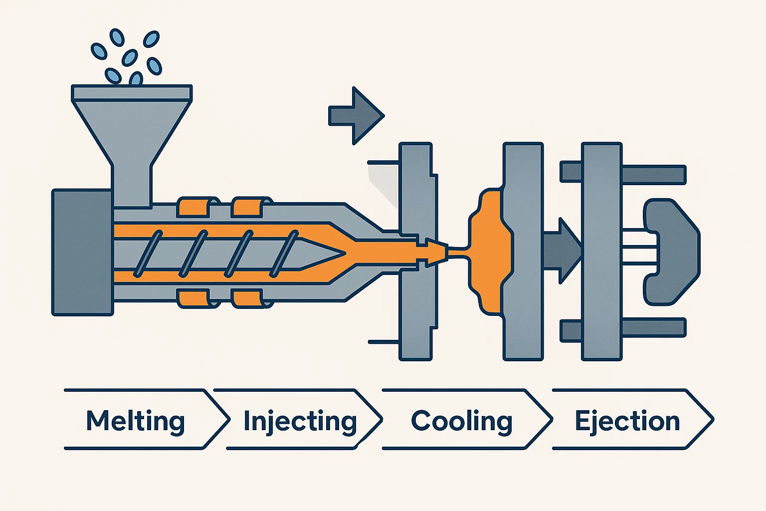 Comment cela fonctionne: fondre, injecter, refroidir et éjection