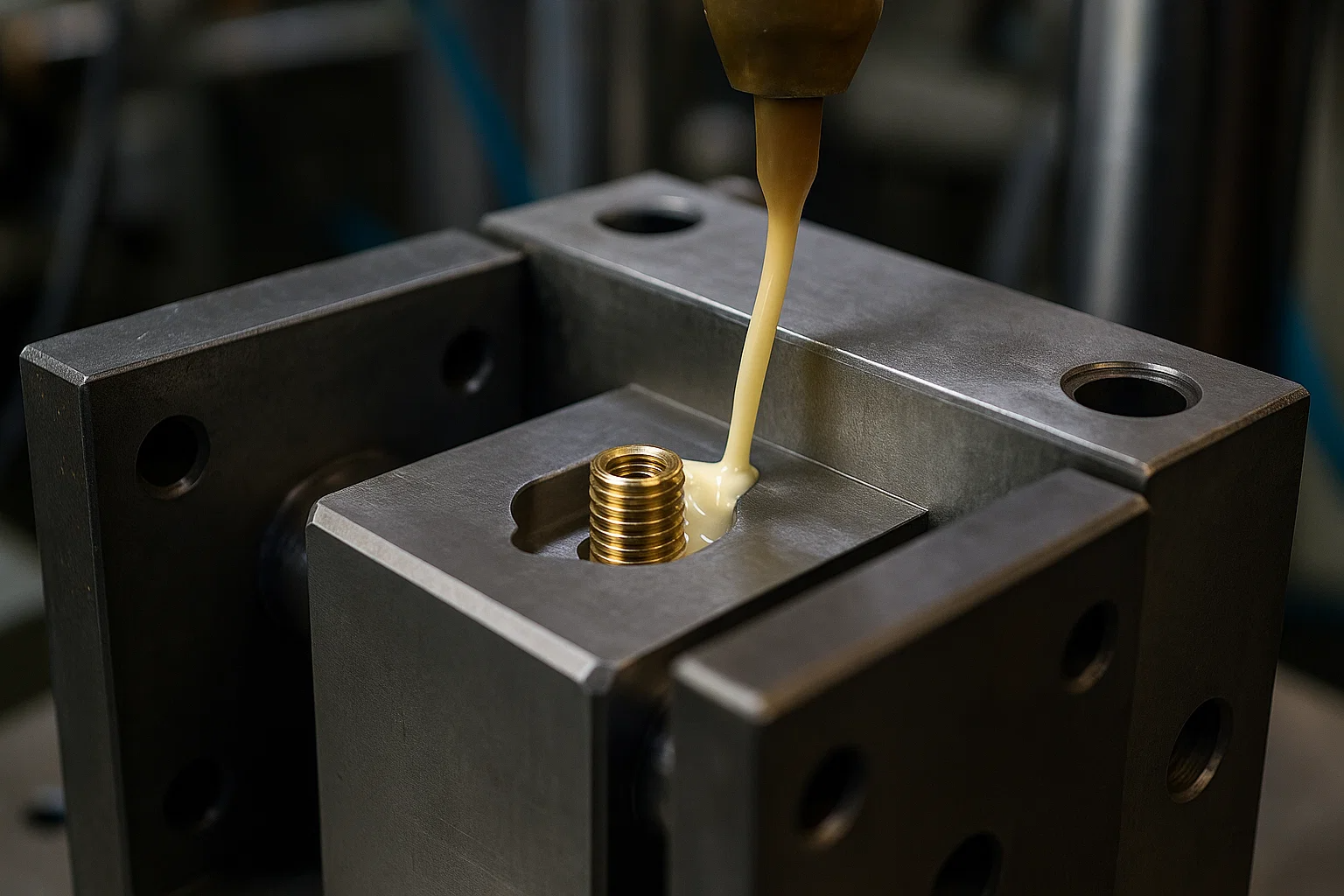 Injection de matériau: Le plastique en fusion (thermoplastique ou thermodoste) est injecté sous une haute pression dans la cavité du moule, circulant et encapsulant les inserts. Le matériau remplit tous les vides, créant une forte liaison ou un serrure mécanique avec l'insert.