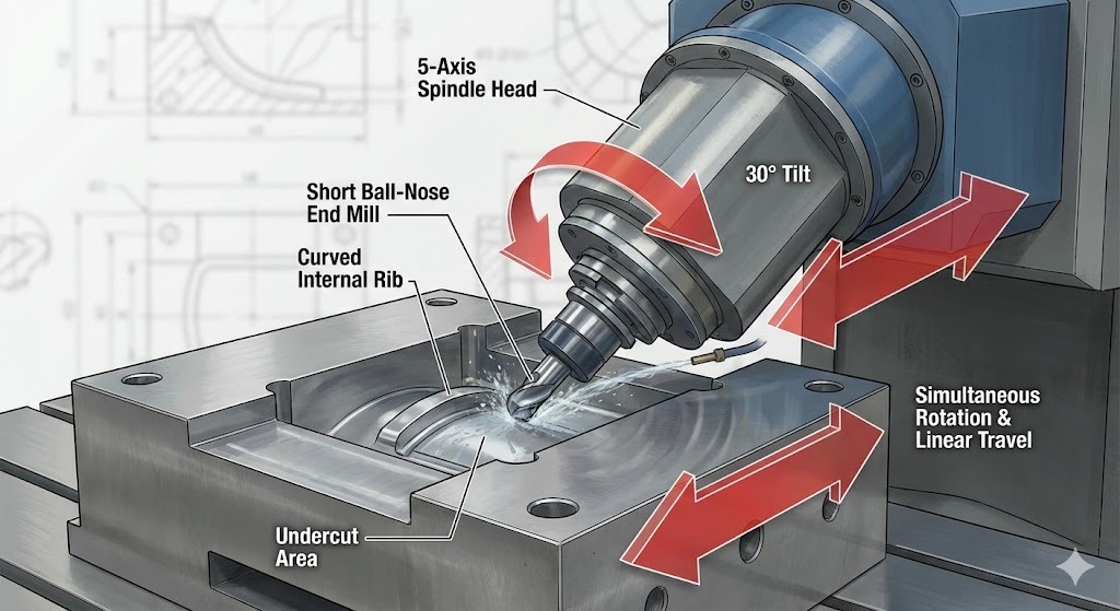 Pour qu'un moule à 5 axes réussisse, le logiciel doit gérer bien plus que de simples coordonnées ; il doit gérer la physique et la géométrie en temps réel.