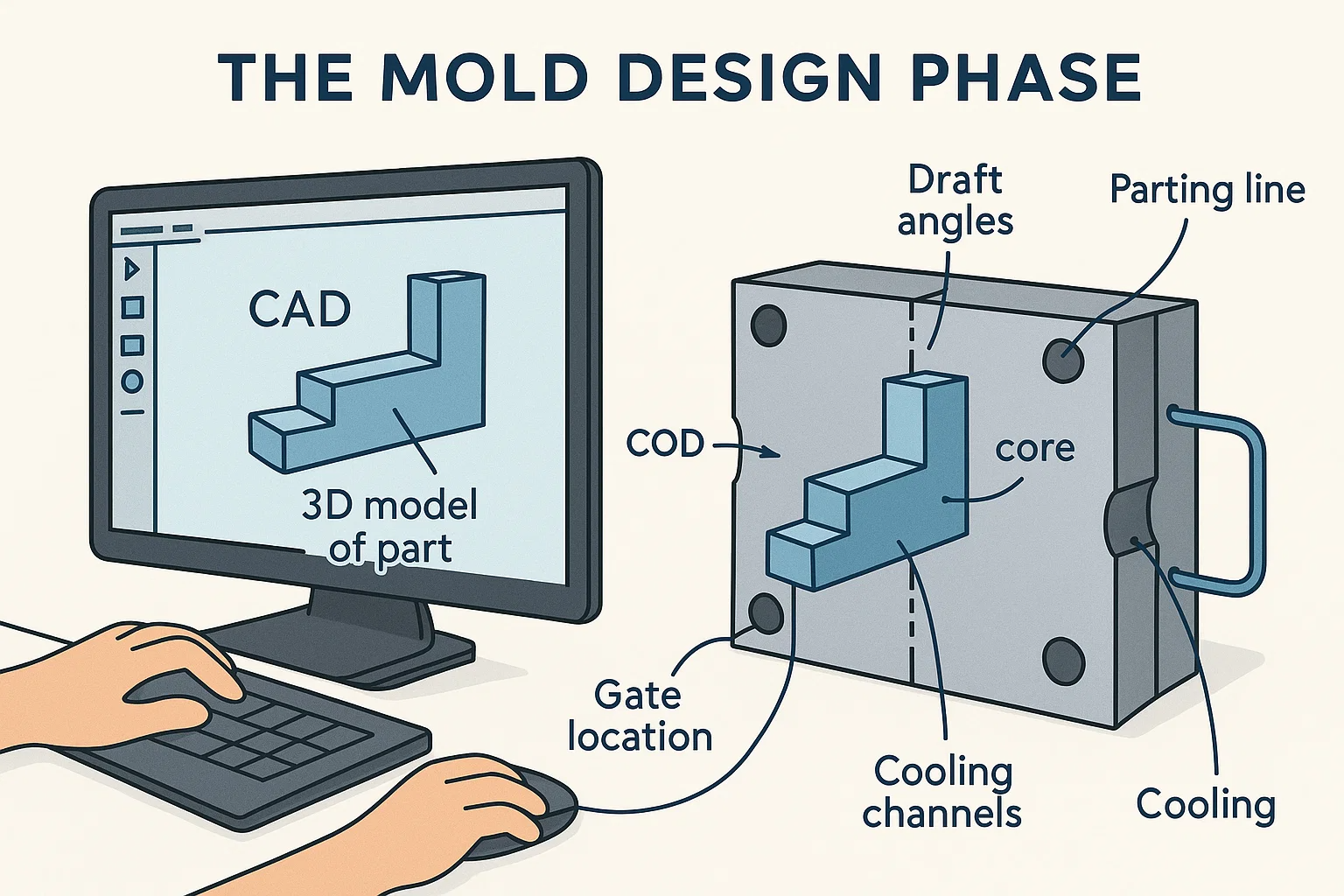 Avec une compréhension claire de la façon dont le moulage par injection transforme le plastique brut en pièces finies, nous pouvons maintenant apprécier l'importance primordiale du phase de conception de moisissure . C'est là que la magie commence vraiment, alors que les idées abstraites et les croquis 2D évoluent en un plan numérique précis qui guidera la création physique du moule. C'est un processus méticuleux où chaque courbe, angle et dimension de la partie du modèle plastique final est soigneusement considéré et traduit dans la géométrie du moule.